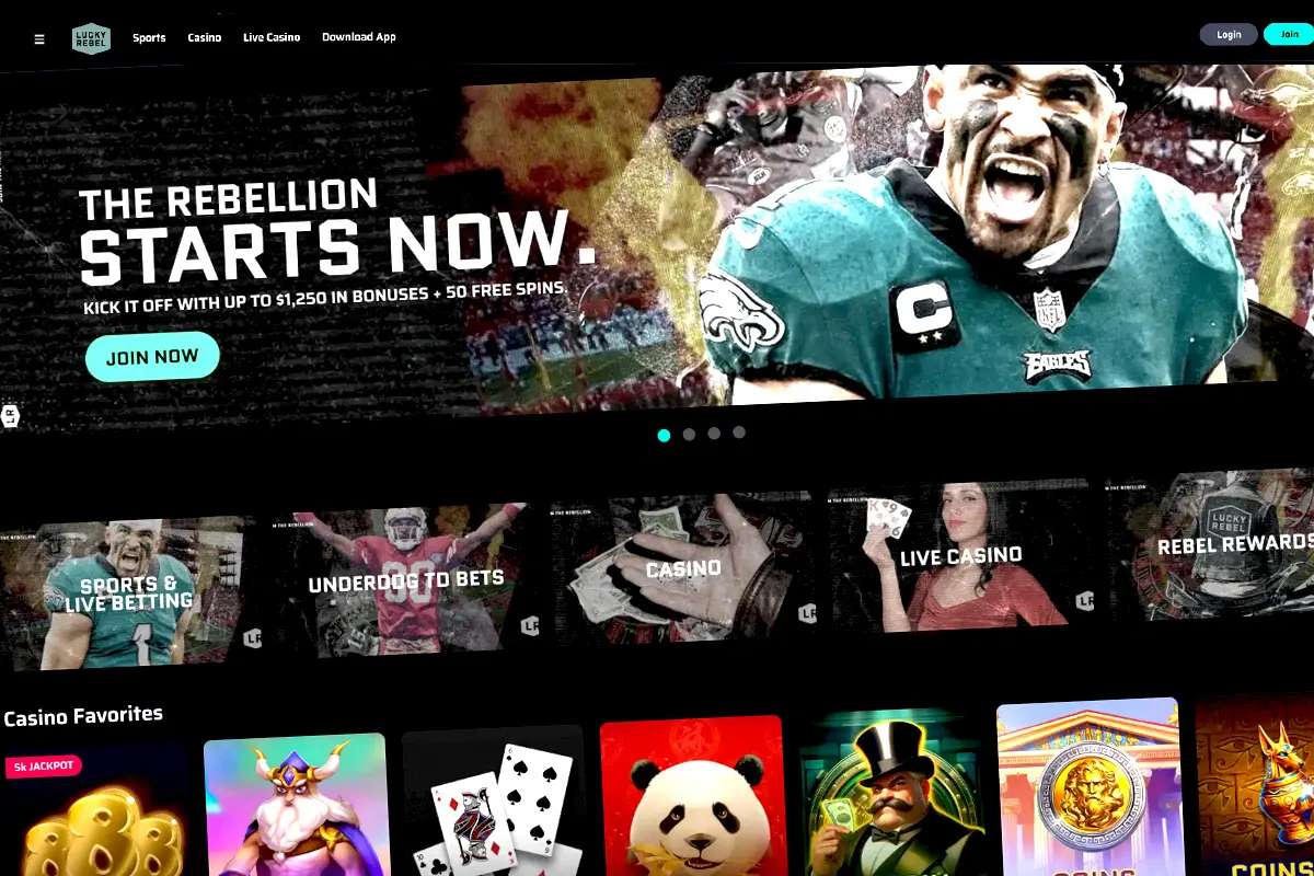 Lucky Rebel offers a 125% sportsbook bonus up to $1,250 plus 50 free spins, giving new players extra firepower and rewards right from their first bet.